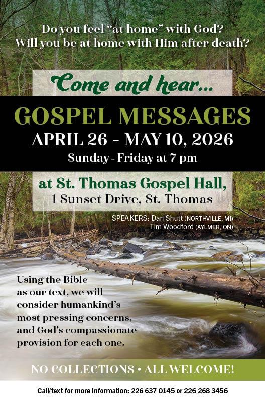 Gospel Hall, 1 Sunset Drive, St. Thomas, ON, N5P 3T2
